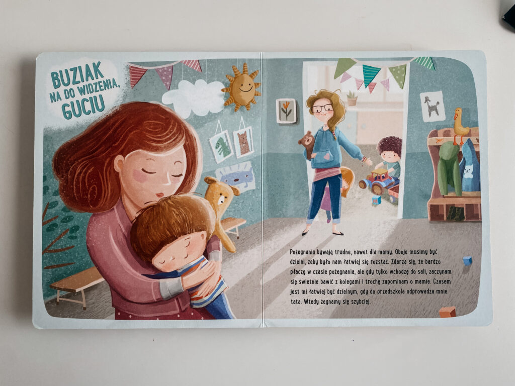 Jeśli jeszcze nie masz żadnej z tych książeczek i stoisz przed wyborem, proszę, nie rzucaj się na nie wszystkie. Dlaczego? Ważne jest, aby w procesie adaptacji – czy to przed rozpoczęciem roku szkolnego, czy już w trakcie uczęszczania do przedszkola – nie zasypywać dziecka wyłącznie pozycjami związanymi z przedszkolem i nie prowadzić ciągłych rozmów na ten temat. Istotne jest, aby przedszkole nie zdominowało całej Waszej rzeczywistości.